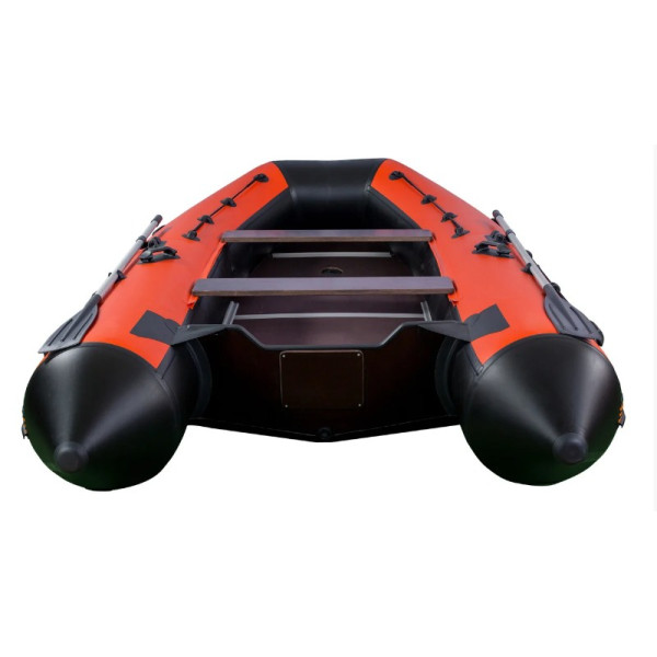 Жёсткий встроенный транец из водонепроницаемой фанеры толщиной 27 мм с двумя накладками: фанерной снаружи и металлической внутри - позволяет использовать подвесной мотор до 30 л.с. вроде Tohatsu M30 S или любой электромотор, например, WaterSnake SXW 54 Venom. Транец оборудован сливным клапаном. Косынки из ПВХ между транцем и баллонами защищают кокпит от попадания брызг от мотора.