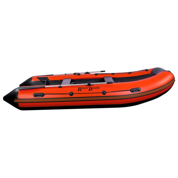 Лодка Riverboats 390 ― семиместная лодка ПВХ с жёстким встроенным транцем; надувным килем; составным фанерным полом с креплением шип-паз со стрингерами; передвижными сиденьями; рассчитанная под мотор мощностью до 30 л.с..